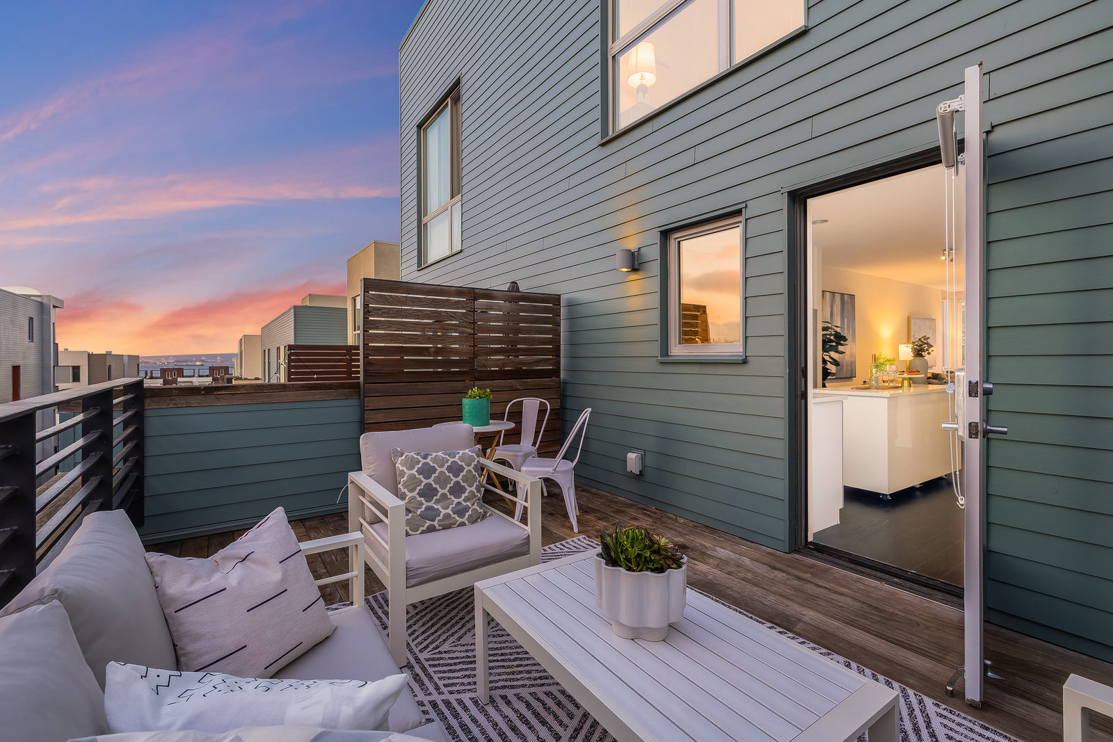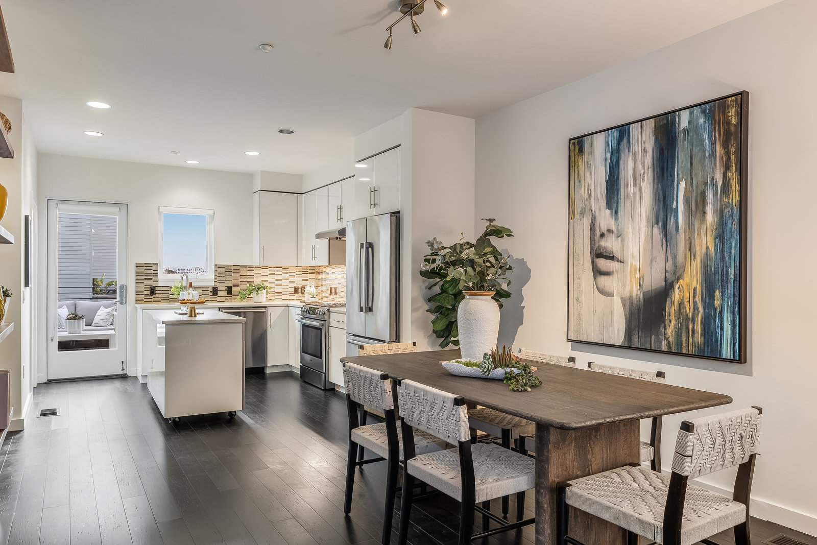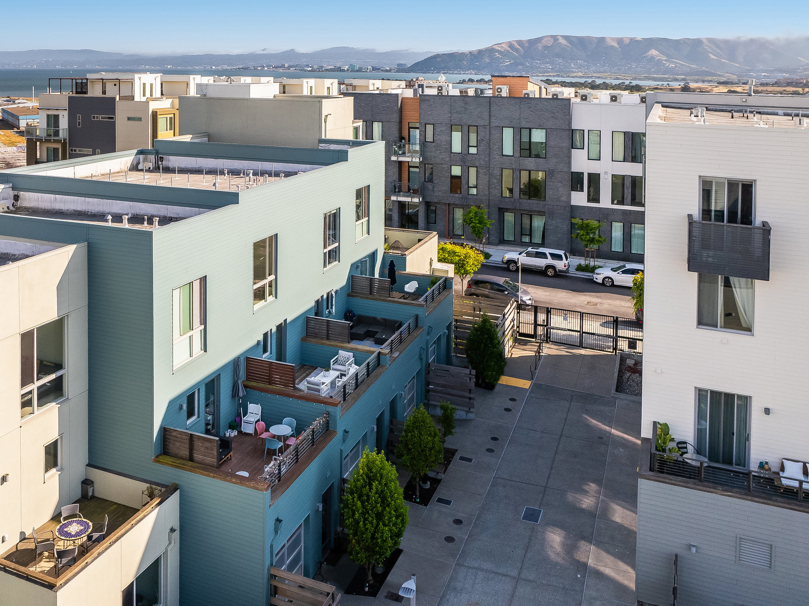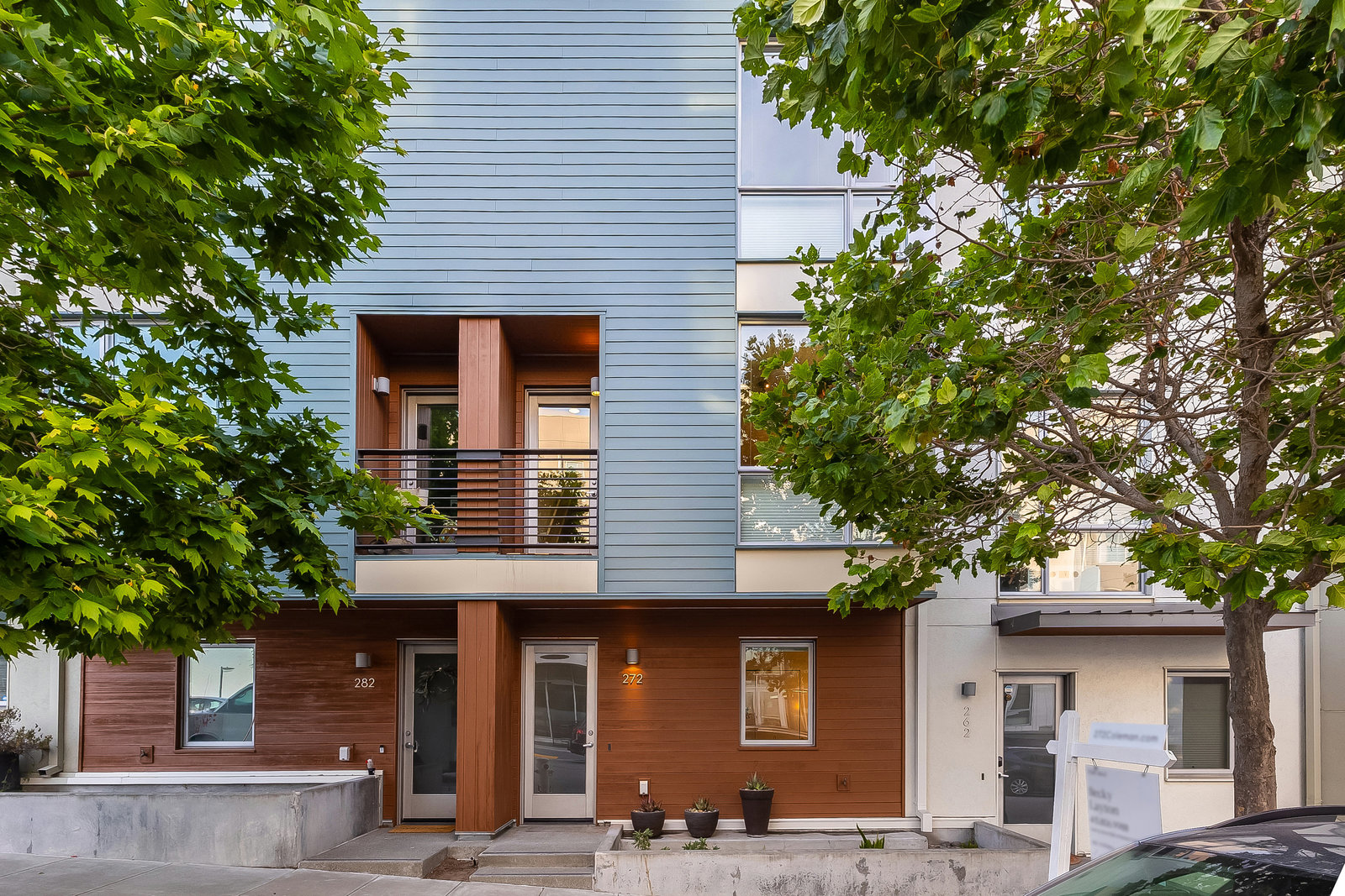 Built in 2016, this nearly-new townhome offers the perfect blend of modern style and functional design. Featuring 3 bedrooms and 2.5 bathrooms, the home boasts an open-concept kitchen, dining, and living area with sophisticated dark hardwood floors and abundant natural light. A generous deck just off the kitchen provides seamless indoor-outdoor living, ideal for entertaining or relaxing with a view.With no neighbors above or below, a large private 2-car garage with a secure gated entrance, and dedicated front and rear entrances, this townhome has the feel of a single-family residence at an affordable price! The thoughtfully designed interior includes tall ceilings, built-in shelving, recessed lighting, and 2 decks facing northeast and southwest, offering bay and downtown views. The kitchen is appointed with quartz countertops, glass tile backsplash, a movable island for added flexibility and storage, and contemporary finishes throughout. Upstairs, the spacious primary suite with an attractive en suite bathroom, serves as a tranquil retreat with peek-a-boo bay views and custom black-out window shades. On the upper level is an additional bedroom with expansive city views and a full bathroom. A half bathroom on the main level living area provides convenience for guests. Just steps from the back door is an exclusive use picnic area with gas BBQs and fire pits for the townhome (only) ...