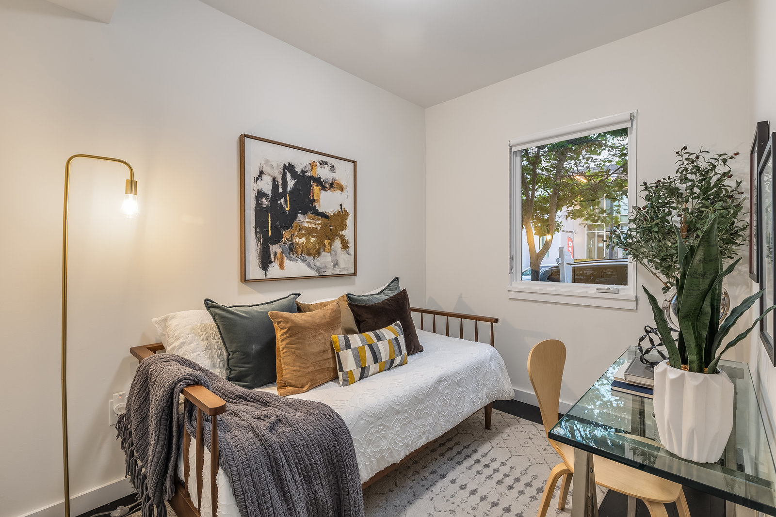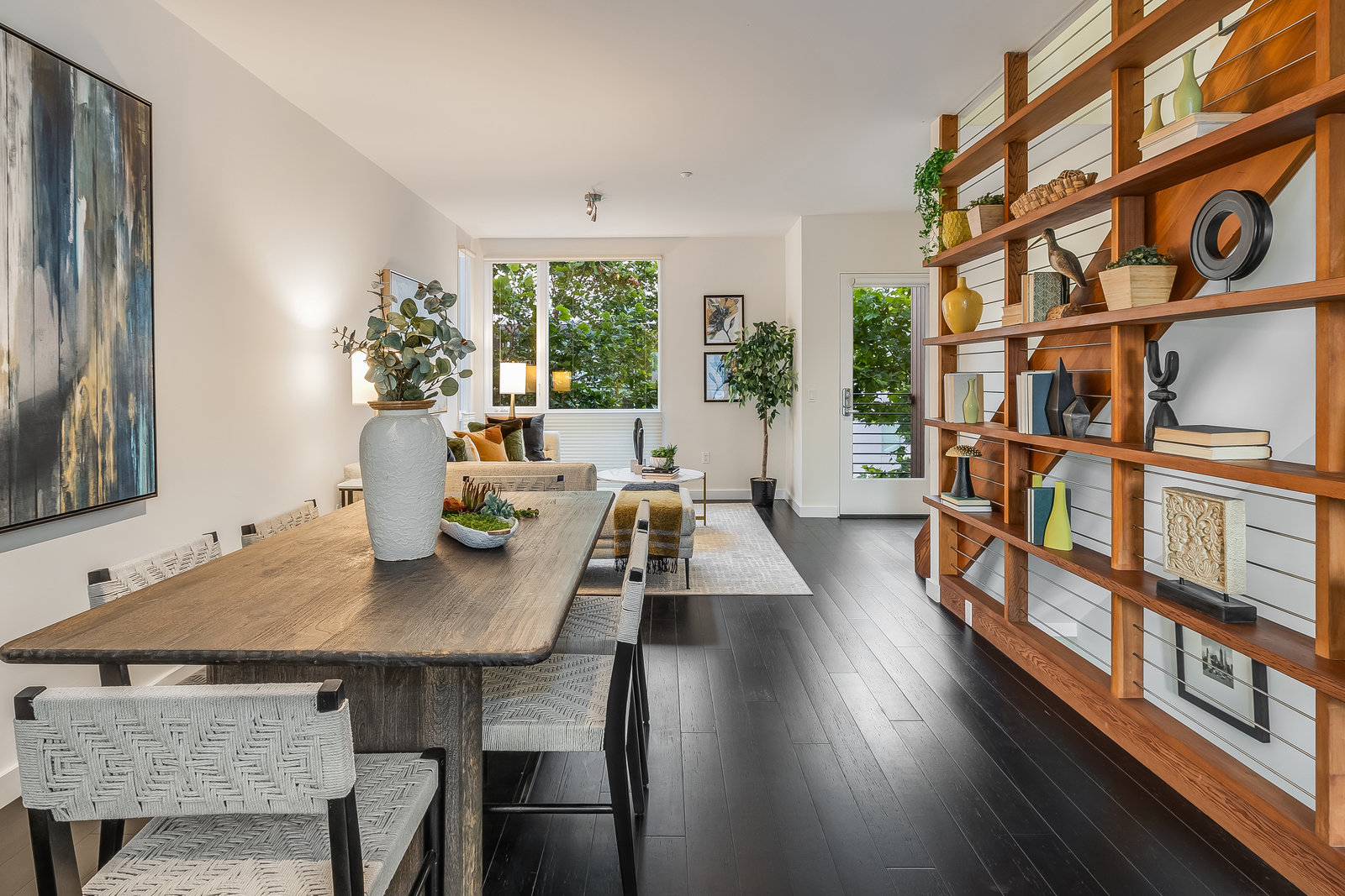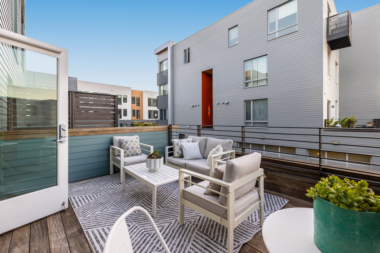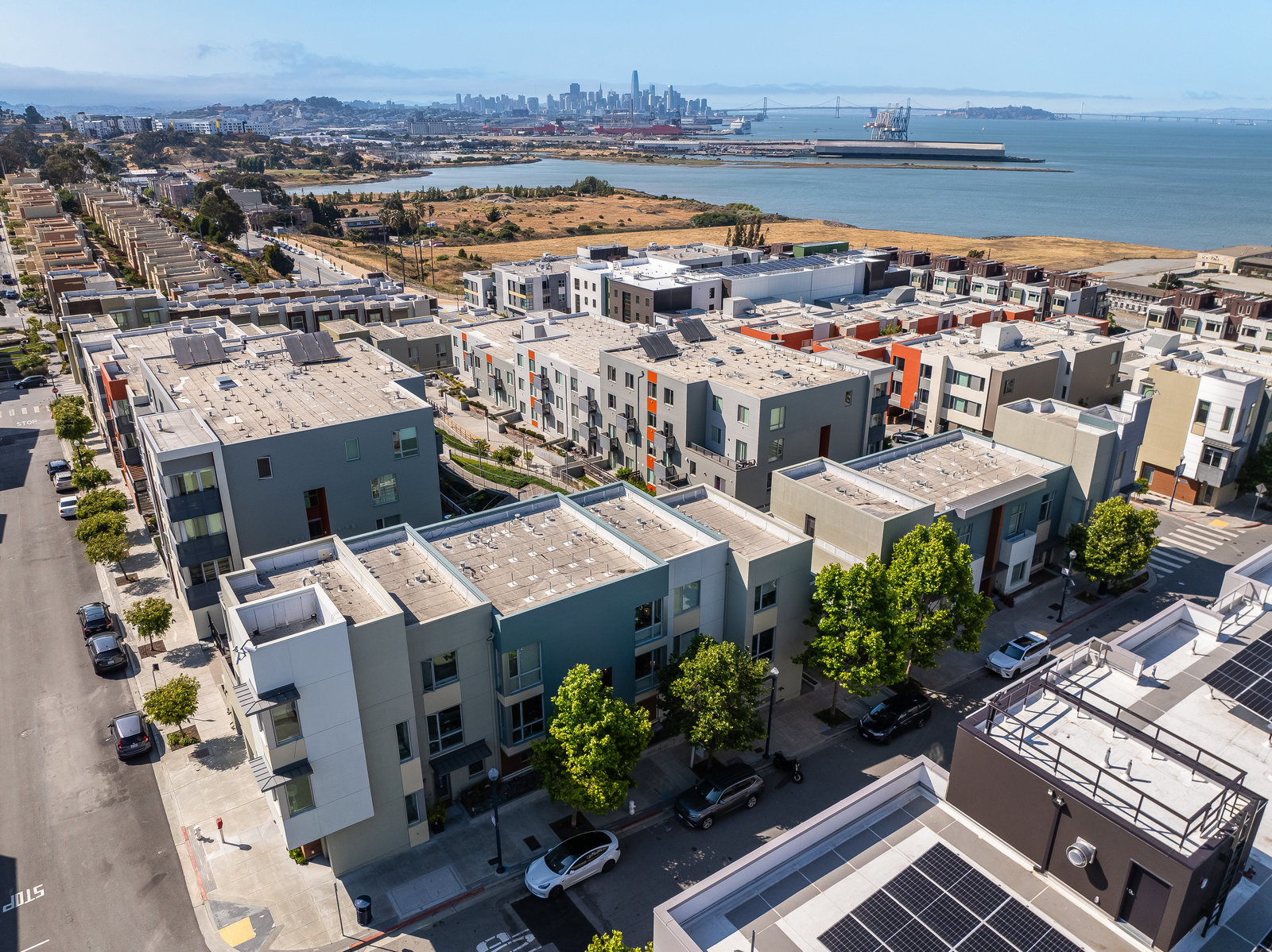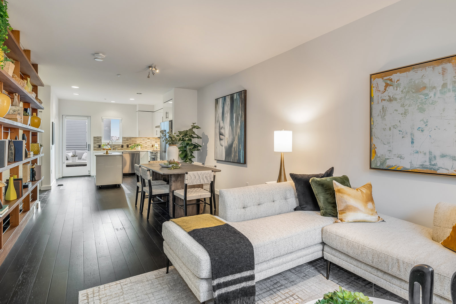 Built in 2016, this nearly-new townhome offers the perfect blend of modern style and functional design. Featuring 3 bedrooms and 2.5 bathrooms, the home boasts an open-concept kitchen, dining, and living area with sophisticated dark hardwood floors and abundant natural light. A generous deck just off the kitchen provides seamless indoor-outdoor living, ideal for entertaining or relaxing with a view.With no neighbors above or below, a large private 2-car garage with a secure gated entrance, and dedicated front and rear entrances, this townhome has the feel of a single-family residence at an affordable price! The thoughtfully designed interior includes tall ceilings, built-in shelving, recessed lighting, and 2 decks facing northeast and southwest, offering bay and downtown views. The kitchen is appointed with quartz countertops, glass tile backsplash, a movable island for added flexibility and storage, and contemporary finishes throughout. Upstairs, the spacious primary suite with an attractive en suite bathroom, serves as a tranquil retreat with peek-a-boo bay views and custom black-out window shades. On the upper level is an additional bedroom with expansive city views and a full bathroom. A half bathroom on the main level living area provides convenience for guests. Just steps from the back door is an exclusive use picnic area with gas BBQs and fire pits for the townhome (only) ...